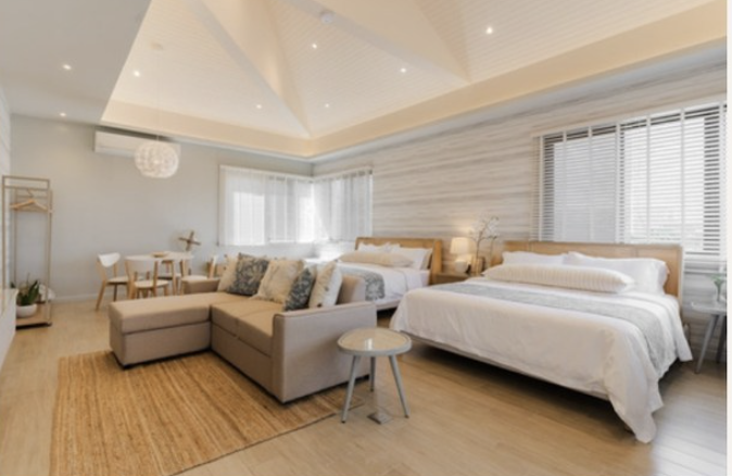 - 1-2 minute walk to beach front (public beach)